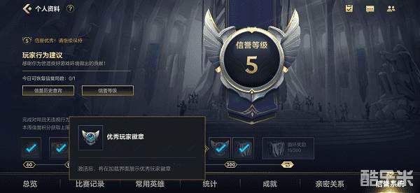 3.总的来说,玩家保持良好的游戏行为就可以获得右上角的圆圈,也就是优秀玩家徽章。