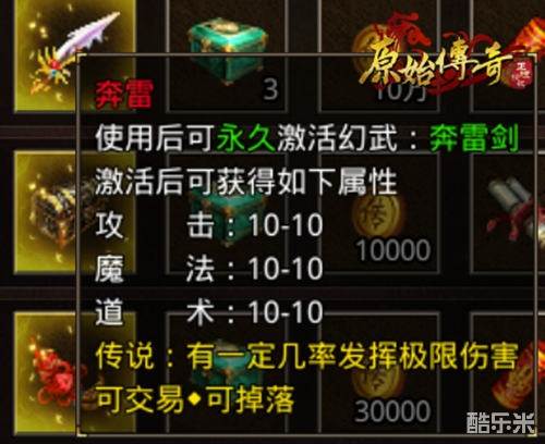 作用:使用后可永久激活幻武:奔雷剑,提高武力的同时,还有一定几率发挥极限伤害。