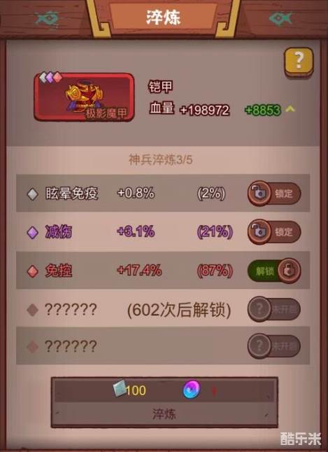 洗完武器之后洗装备,三个孔位有橙色就可以继续洗下一件,需要留的属性参考武器,其它部件也是一样,其中减伤、暴击、技能伤害、免控,橙色就可以留着,其它属性红色留最好。