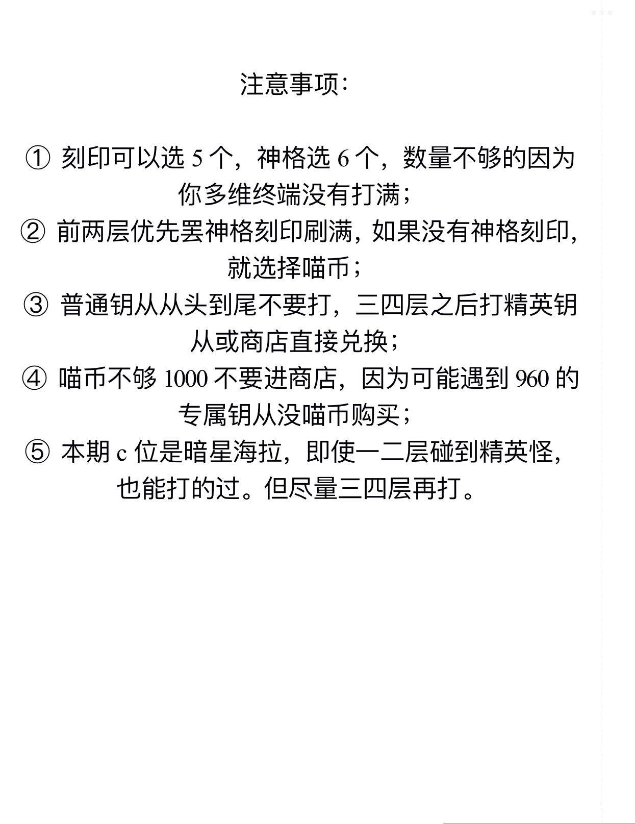 神格刻印选择,记忆珍宝选择和注意事项见附件图片。