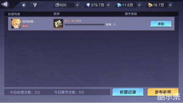 发布祈愿选择你所需要的猎人的碎片,如果公会里有人有,就会回应你的求助。但如果你要的是那种史诗级猎人的碎片,有的时候就要等大佬投喂或者是自己小号给了。