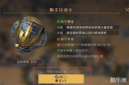 3、在行动令页面点击购买行动令,使用帝国币即可获得行动令。