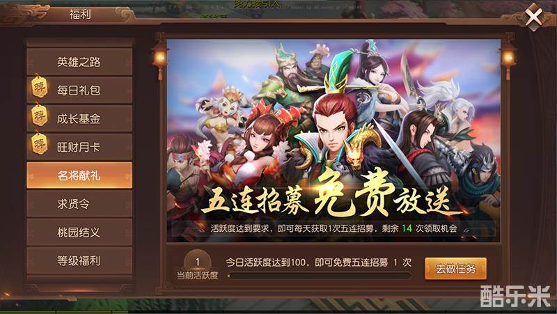 在三国世界中,想要变得更为强大,怎能不广纳天下英杰?在终极幻想测试期间,玩家只要当日活跃度达到100,即可每天获取1次五连招募机会,总共14次五连招募机会,让最多70个武将加入玩家的麾下。天下归心,指日可待!