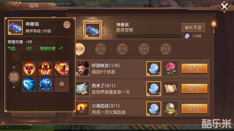只有强力武将,却没有强大的武将宝物,无疑无法发挥武将的真正实力。在测试期间,玩家每完成一项游戏内容,就能获得金色武将宝物碎片,用于兑换金色武将宝物,让自己的武将附加更多强力技能和属性加成,使其能够在千军万马之中,所向披靡!