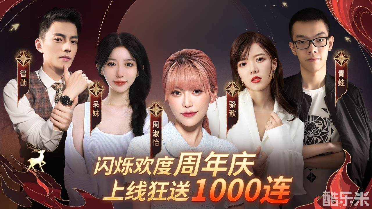 周淑怡、呆妹、智勋、骆歆、青蛙五大知名主播齐聚一堂,火力打call,豪爽1000抽,解锁盘古神卡,共庆周年盛典!