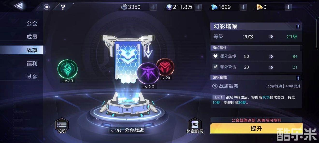 当玩家进入公会后把公会战旗升到20级以后,可以解锁战旗系统,玩家消耗战旗奖章能增幅幻影,强袭,超能三个职业属性,并能在副本中携带公会战旗。