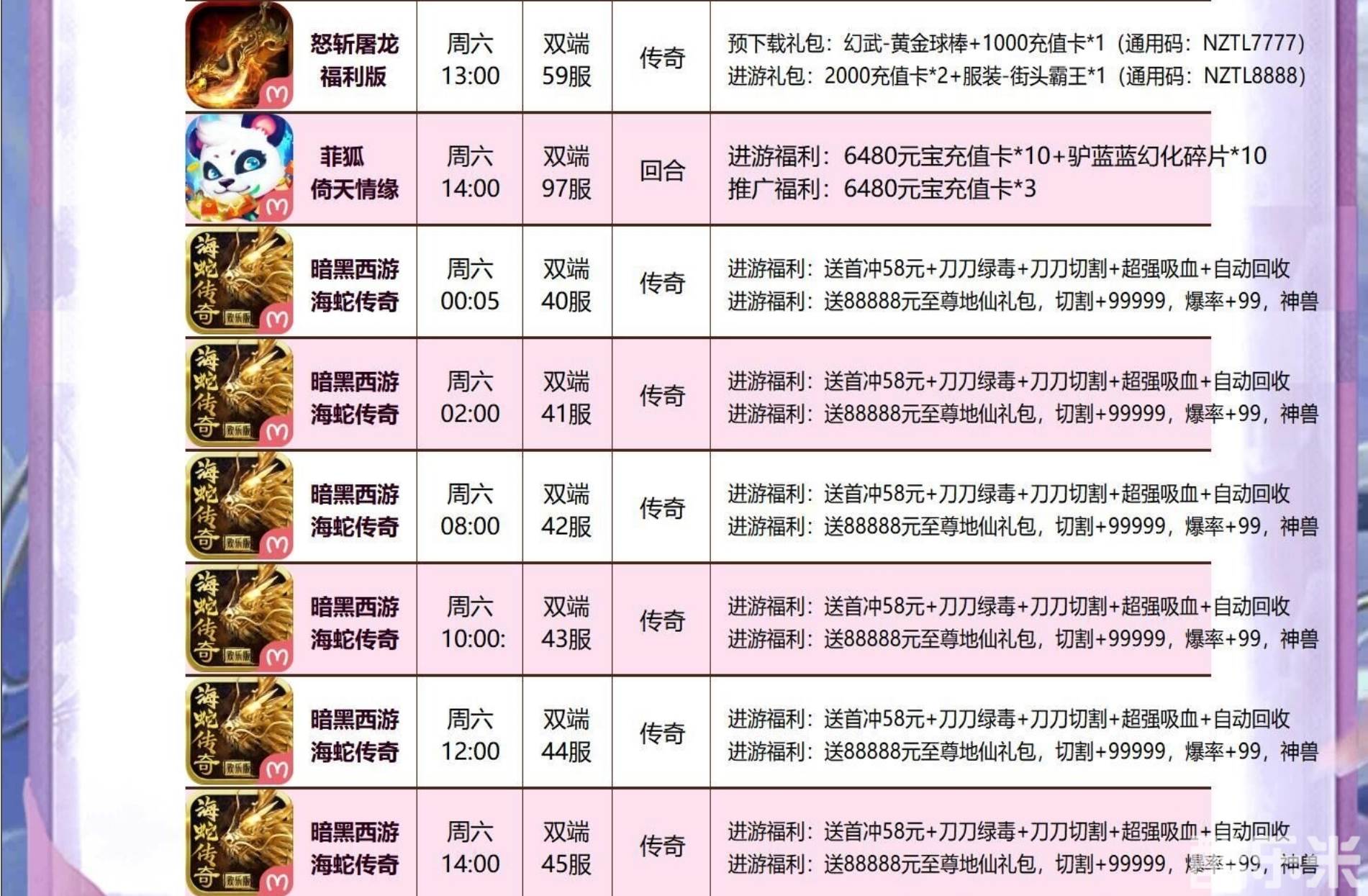| 海蛇传奇-魂环爆宠版 | 双端106区( 苹果- 安卓) | 2022-07-09 09:00:00 |
