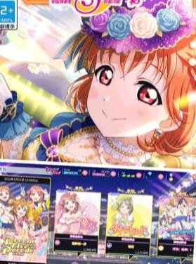 2.紫色可用输出卡。上一张紫色直接获得得分的卡是蝴蝶林(10465),再上一张是初始妮(7956)。这张鞠莉的红值往1.3w拔高,输出方面很给力了。