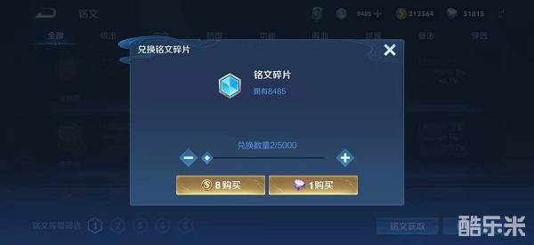 铭文可以使用金币和钻石购买,8金币或者1钻石可以兑换两个铭文,金币钻石多的话,铭文基本瞬间就可以升到150级。