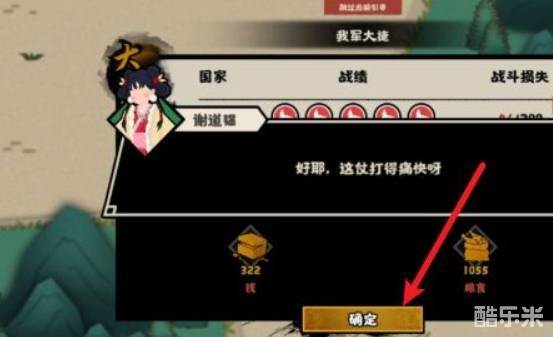 一、在【无悔华夏】游戏中,在战斗胜利页面点击确定,如下图所示;
