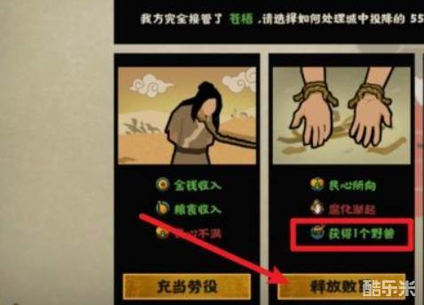 二、进入处理投降兵甲的页面,选择释放败军,如下图所示;