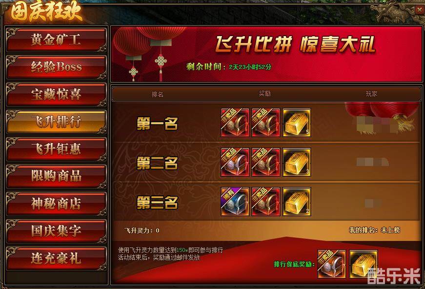 1、活动期间,获得飞升灵力达到150W可参与排行。