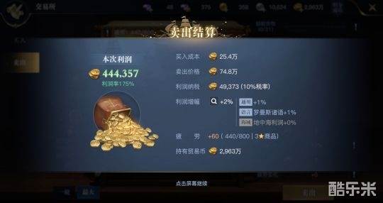 3.到达每日流行贸易触发时间段后,务必将每天的流行贸易的福利货物都贸易完,不增加疲劳且收益十分可观,每日必做。