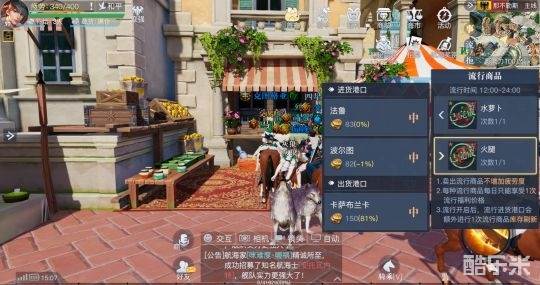每天的12点至24点贸易系统将触发一个贸易的独特内容:“流行贸易”,游戏每天的12:00将开启“流行竞猜”,我们可在世界频道竞猜当天的流行货物,若竞猜成功将可以获得50绑钻的奖励!