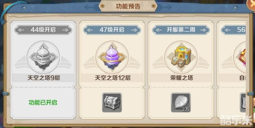 在玩家等级到44级之后就可以开放天空之塔玩法。该玩法需要只3—5人组队才可进入,每层可以获得5点活跃度,普通玩家可以每天获得3次奖励。开放时间为周一、周三、周五12:30—24:00。主要是通过该玩法获取红品符文,顶级红色符文,培养后可以获取大量评分,还可以洗练出稀有属性和套装词条。还有就是两种符印,15个红色符印可以合成一个红色符文,15个橙色符印可以合成一个橙色符文。