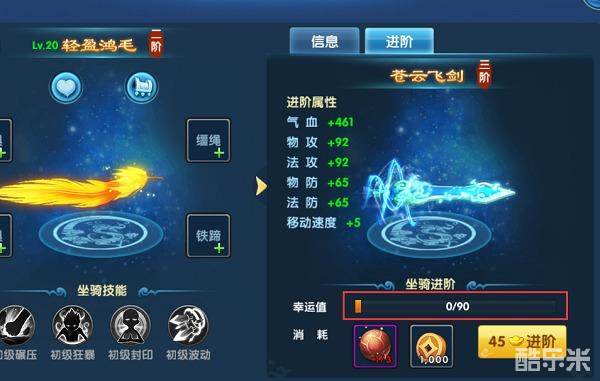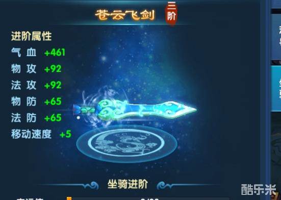 第二阶坐骑是轻盈鸿毛属性比祥云好
