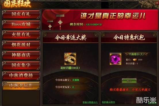3、每日21点抽出一个该日的幸运数字(1-100),中奖数字所属玩家获得该日的幸运大奖,奖励邮件发放。