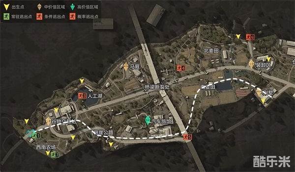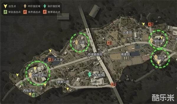 1、这里的物资点主要是装卸区和别墅这两个中价值物资点,在南北麦田、仓库也有物资可以获取。在装卸区未上锁的建筑内可以找到饮料、投掷物等物资,而在上锁区域的话则有武器箱、医疗箱等。需要注意的是,装卸区的入口不止一个,所以在注意npc袭击的同时也要注意不要被其他的玩家偷袭了。