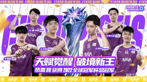 作为WRL赛区三号种子,NV在此次全球冠军杯从力争小组赛第一出线,到半决赛力克劲旅FPX战队,再到最后捧起夺冠奖杯,完美诠释赛事主题——“天赋觉醒”的NV一路高奏凯歌,让全世界共同见证了他们名为“紫金王朝”的传奇。