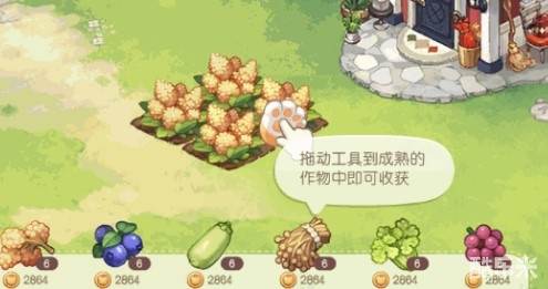 1.点击小爪子拖动,拖动到菜上就就可以收获了。