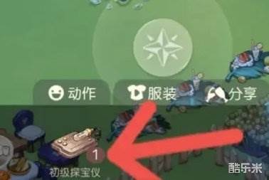 2、根据探宝仪提示的讯号,移动位置,寻找信号最强的位置(四格变绿)就可以找到宝藏