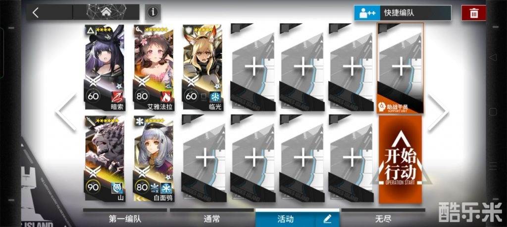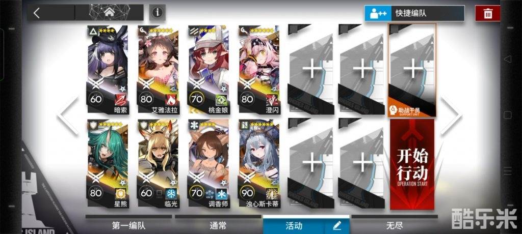 依次部署桃金娘,斯卡蒂,粉毛,星熊小羊都←,暗锁↑,调香师→,临光