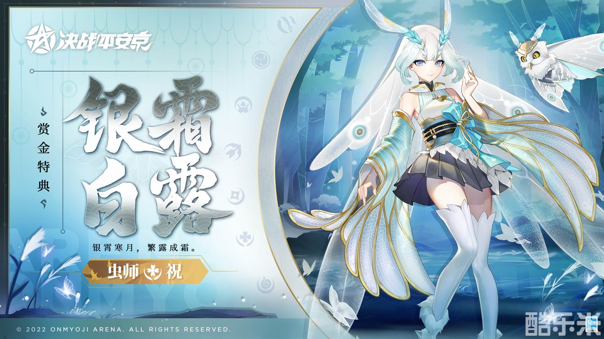 振翅翱翔,绽放出属于霜露的剔透虹光。7月15日维护更新后,虫师全新赏金特典皮肤「银霜白露」上线!后续,游戏还将陆续为大人们带来更多式神、新皮肤,更多游戏信息、活动预告,请关注《决战!平安京》官方网站、官方微信、官方微博。