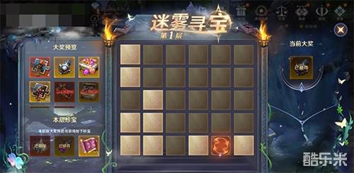 迷雾寻宝共十层,每层有30个宝藏格子,玩家选择想要开启的格子,使用寻宝券就能获得格子后隐藏的宝藏,每个格子背后均有奖品,百分百拿奖哦!