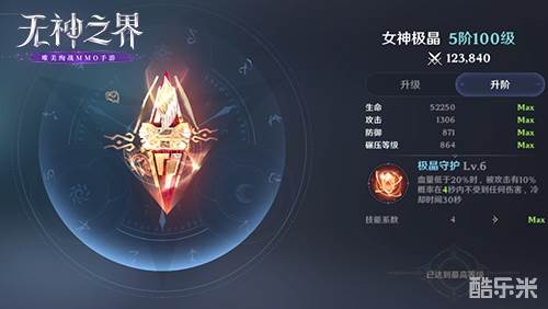 特殊技能:极晶守护 - 血量低于20%时,被攻击时有10%几率在一定时间内不受到任何伤害,冷却时间30秒。