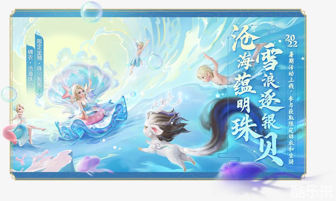 雪浪逐银贝,沧海蕴明珠。【夏日缤纷】下一期【缤纷夏日】将在2022年7月16日中午12点准时上线!少侠们期待已久的限定锦衣【沧海泪珠】将会在商店中上架。