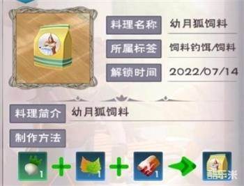 心月狐饲料是紫火芝,桂木叶,稀有肉,按照小编给的配方就可以顺利制作出来了。