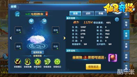 第一阶坐骑也是初始的坐骑是大家耳熟能详的七彩祥云,