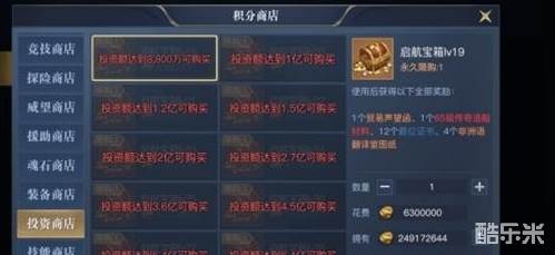 除了参加游戏活动之外,我们还可以通过在投资商店中购买启航宝箱,获取传奇造船材料。