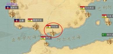 例如我们需完成“画画的男孩”任务,就需要根据发生地点,打开世界地图航行前往“马拉加”。