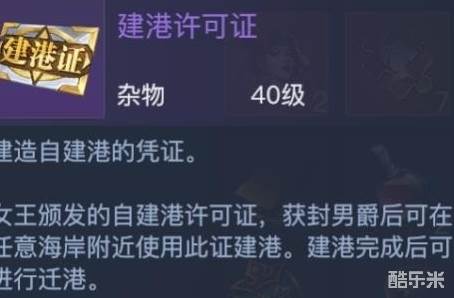 开启条件:完成自建港支线任务,获得建港许可证