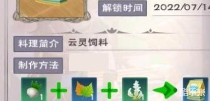 1.云灵饲料=仙灵大萝人+桂木叶+银色海带,使用这几种材料即可制作出云灵材料。