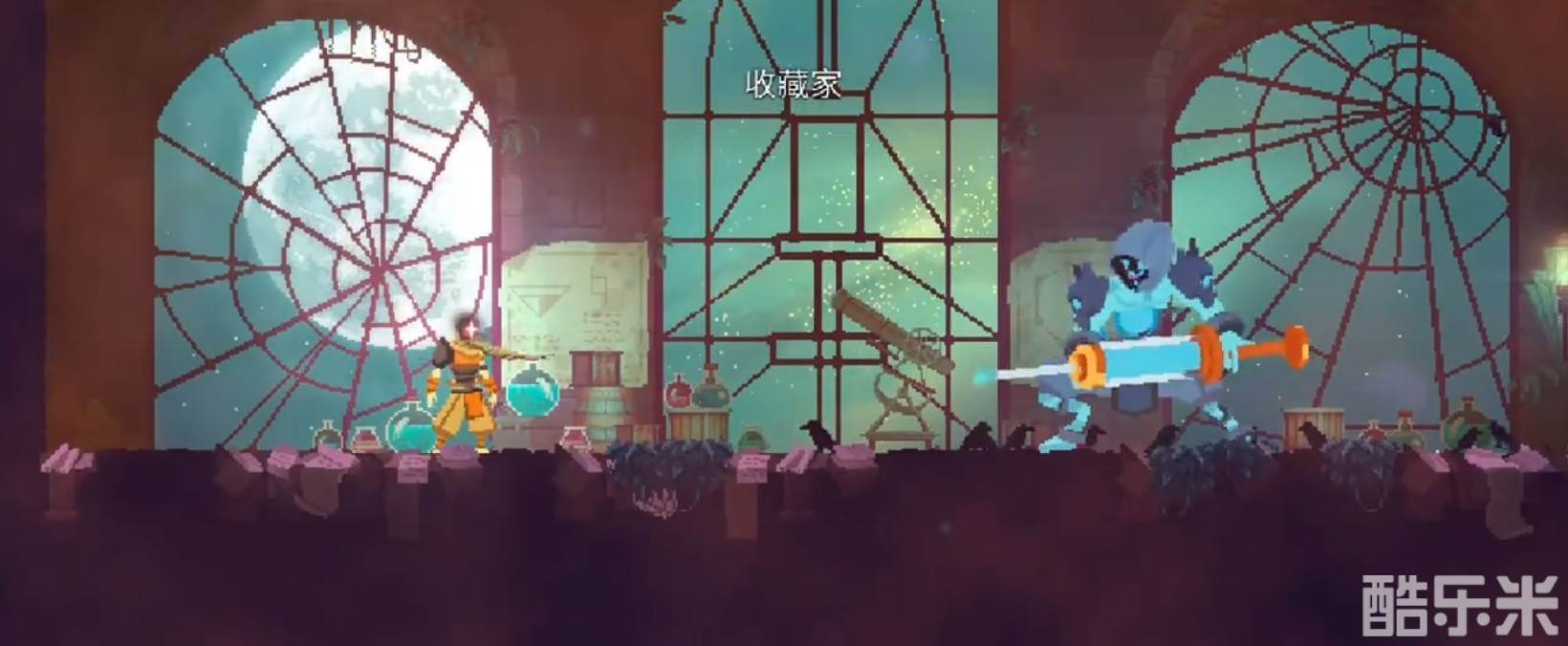 1.首先我们来到打官星台boss这里这个boss就是收藏家,他是拿着大针头的,这个具有很强的回血能力。