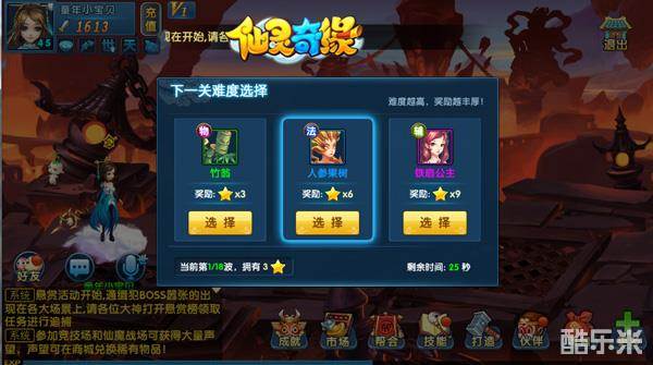 在每关开始,玩家都可以自由选择难度。不过系统预设的情况是:前面关难度低,后面高。因此,打前面几关的话,玩家就尽量打高难度,赞多点星星。所以,难度越高奖励越多。因此,小编建议玩家要想刷积分,关卡就尽量打高难度。