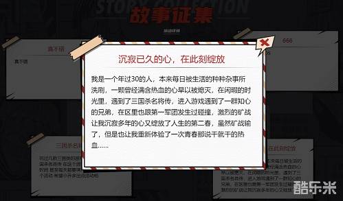 曾几何时,他们是你的伙伴,是你的好友;你们也许曾经成为了现实里的朋友,又或是在离开游戏后各自奔赴自己的旅。还记得年少时和他们在游戏里一起激情的点点滴滴吗?何不写下你的故事,用文字留下那一段回忆?你们曾经一起度过无数个欢乐的时光,曾共同追求在游戏内变得更强,或是名扬四方,或是登顶巅峰。在你们彼此的记忆里,那份曾经真挚的感情深深地被埋在了某个地方。