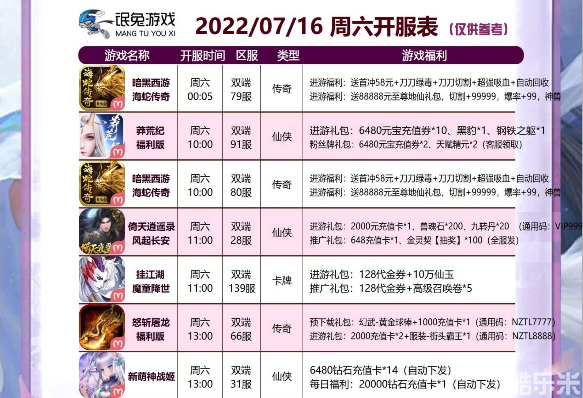 | 怒斩屠龙-福利版 | 66区( 苹果- 安卓) | 2022-07-16 13:00:00 |