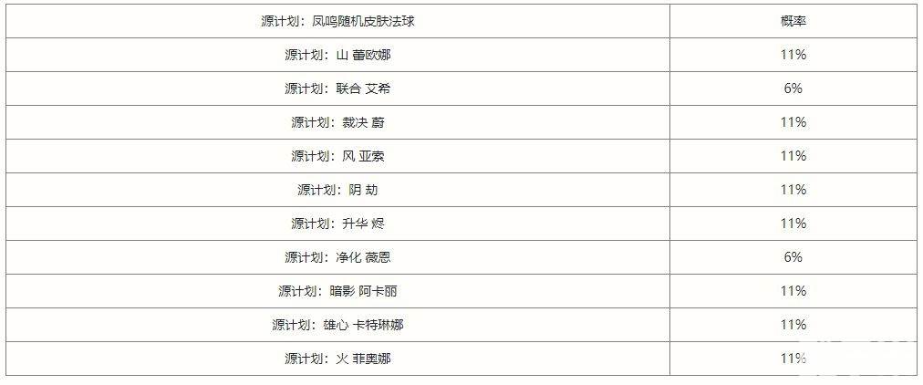 3、 若抽中道具源计划:凤鸣随机皮肤法球,随机皮肤优先抽取召唤师未拥有的皮肤,如果召唤师已获取奖池内所有皮肤,获取重复皮肤,皮肤将获得400魄罗币,若未中源计划:凤鸣随机皮肤法球,获得魄罗能量或其他稀有掉落;
