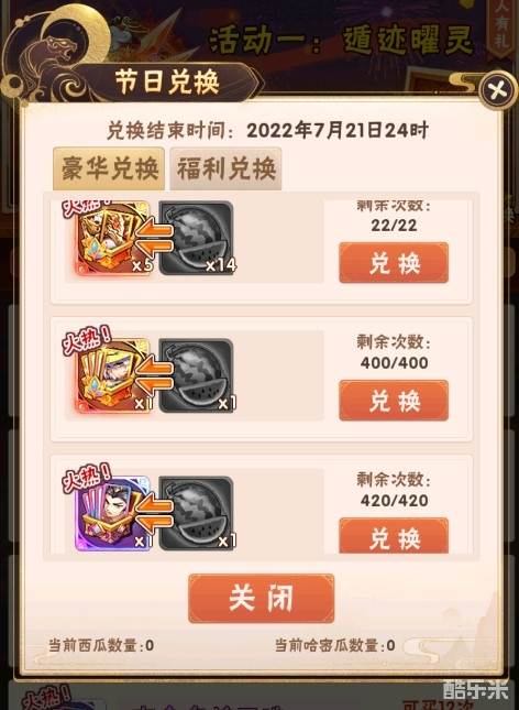 「西瓜」可用来兑换遁迹曜灵二选一、虎虎生威碎片箱、玄金名将五选一等稀有资源: