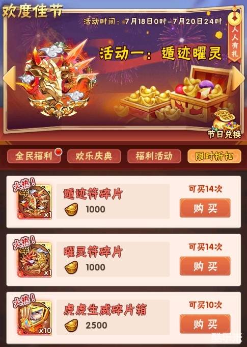 夏日狂欢折扣商店限时促销,折扣低至2折,用元宝就能购买大量稀缺资源!快来选购吧。