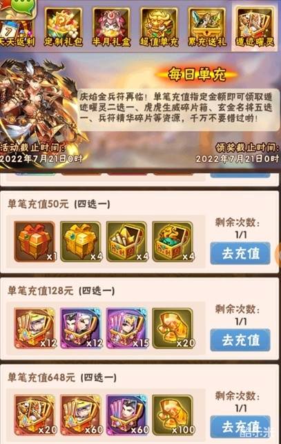 《少年三国志》2022年7月18日夏日狂欢第一轮:焰金兵符+焰金武将