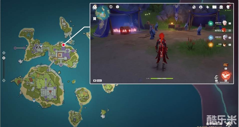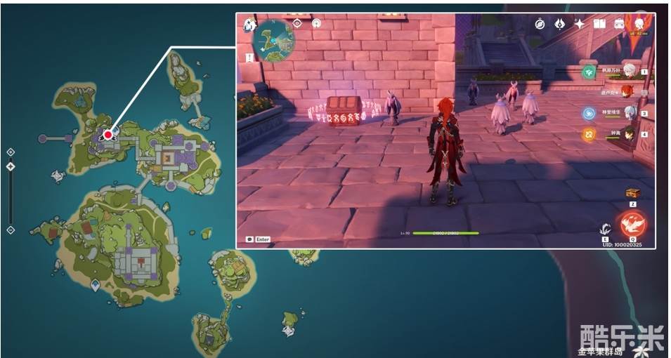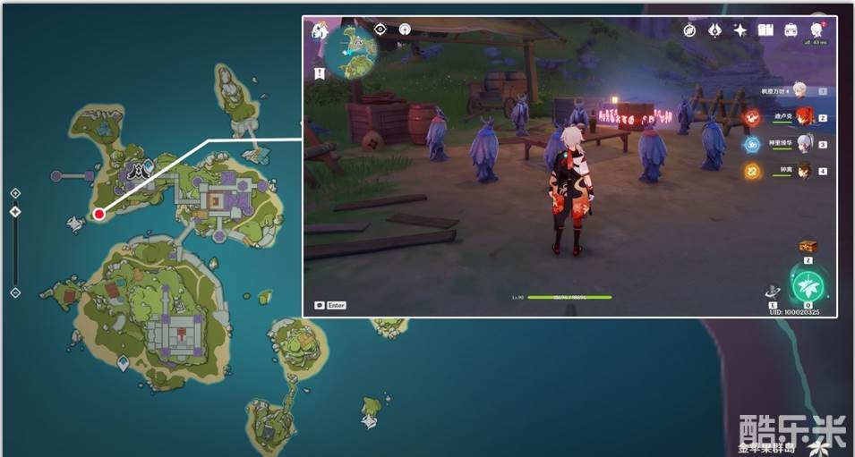 注意,这里由于雕像们站的很近,直接过去选无法分辨出哪个选项对应哪个角色,很容易选错,建议来我下图的位置,贴着墙一点点挪到只能选到“盗宝团「呱」”的位置再进行指认。