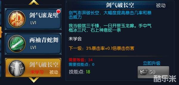 5.剑气破长空:剑气澎湃破长空,大幅度提高暴击几率和暴击威力