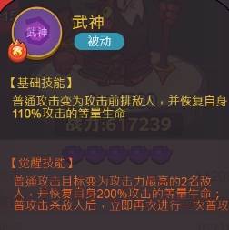 这还没完,关羽的二技能武神,对敌方造成伤害的同时可以恢复自身200%的血量,并且击杀以后可以立即释放。