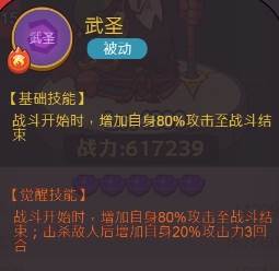 总结:战斗开始武圣增加80%的攻击,武魂被动增加30%,并且击杀一个人增加百分之二十。
