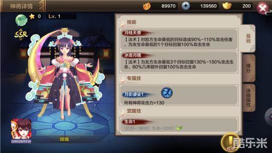 不仅容貌绝世无双,嫦娥的辅助能力也极为出色。普通攻击即可对敌方生命最低的神将造成伤害,又可对己方生命最低的神将恢复生命。怒气技能更可为己方三位队友恢复大量生命,高级觉醒后,该技能还可在恢复生命的同时使目标伤害减免提升25%,有美女如此,夫复何求?