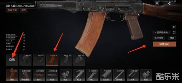 4、这时候槽位上面的配件就清空了,我们就可以去换上新的配件了,最后再去点击右边的完成设计就可以了。